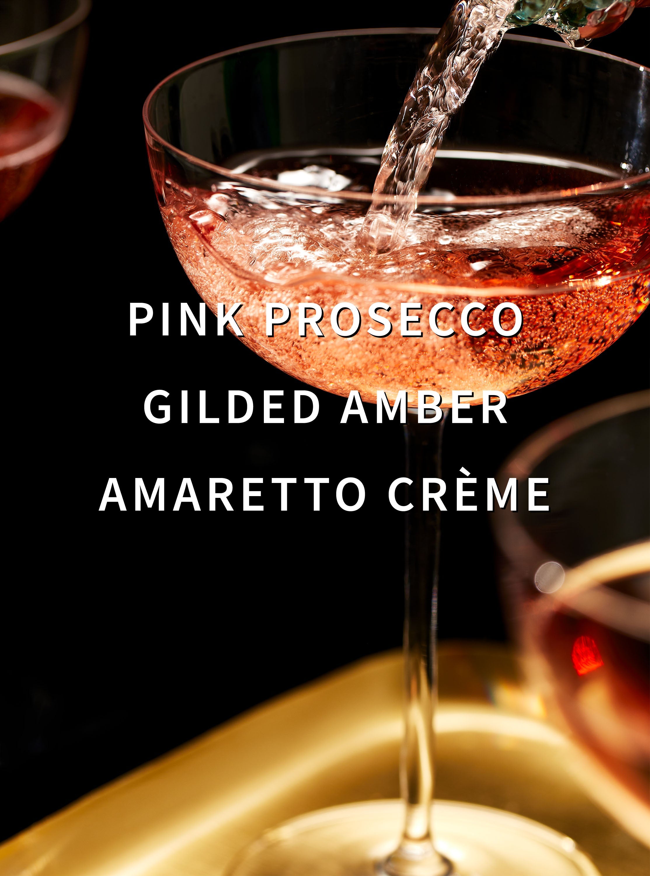 Fragrance notes: pink prosecco, gilded amber and amaretto crème